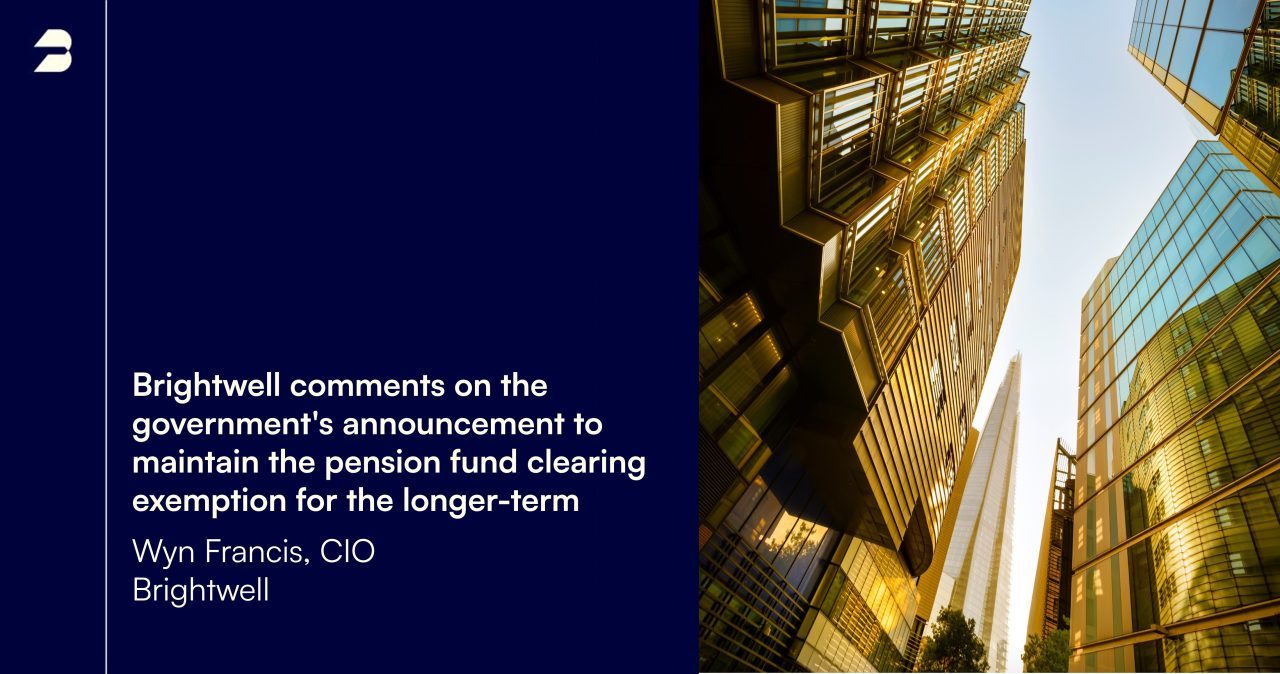 Commenting on the announcement, Wyn Francis, CIO, Brightwell said: “The government’s announcement to maintain the pension fund clearing exemption for the longer-term will be welcome news for pension schemes and their sponsors.