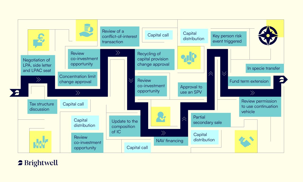 The graphic below illustrates the sheer number of different matters that need to be addressed and managed during a life of a private markets fund: